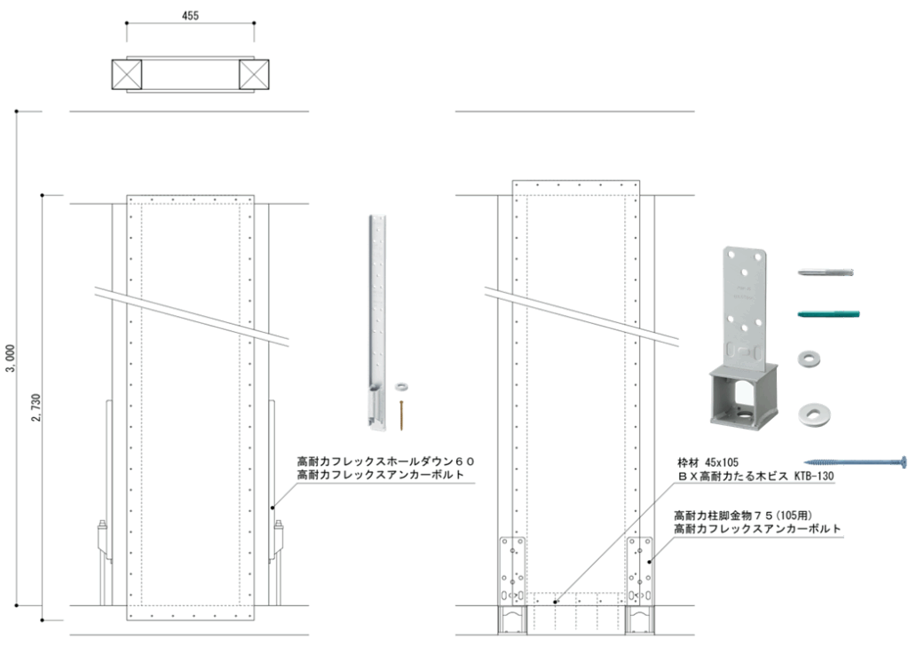 コラムで使用した製品:高耐力フレックスホールダウン60(FH-60), 高耐力柱脚金物75(PSBP-75)