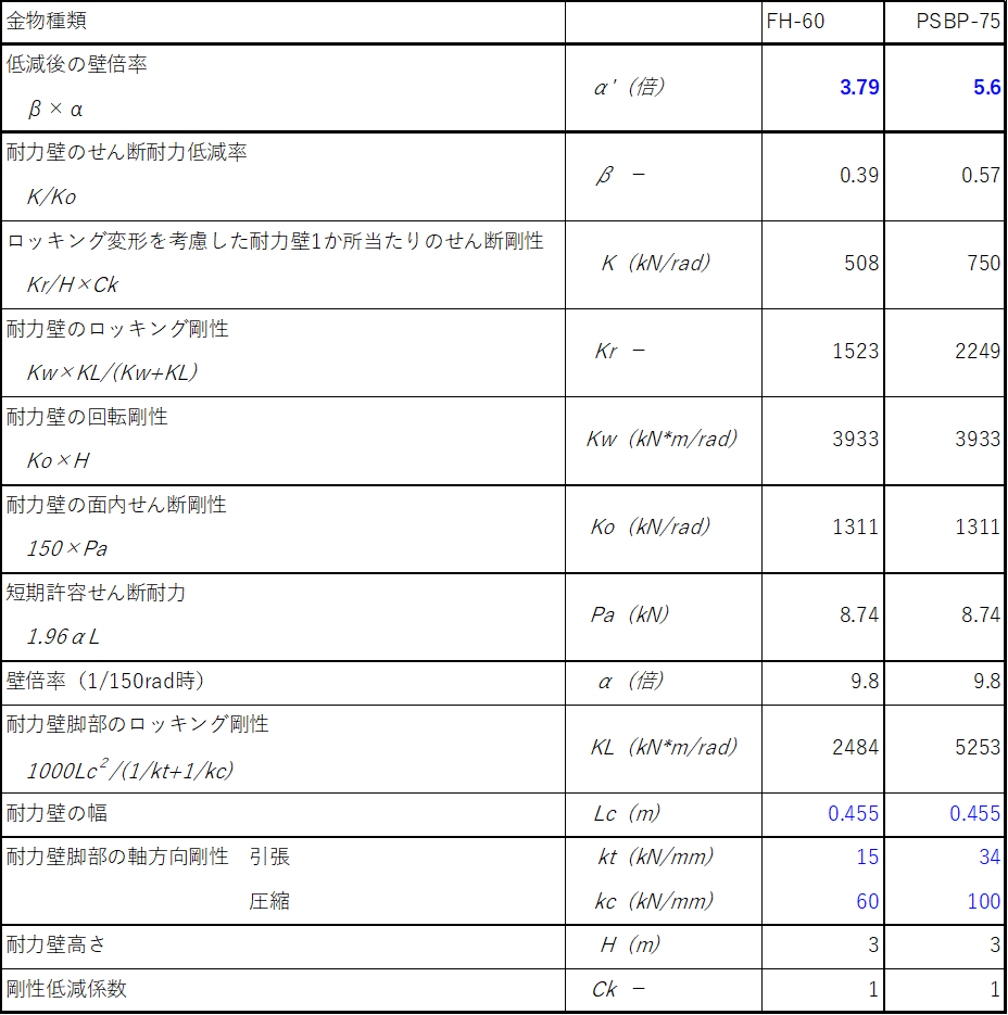 - 高耐力フレックスホールダウン60(FH-60)と高耐力柱脚金物75(PSBP-75)の場合について検討します。