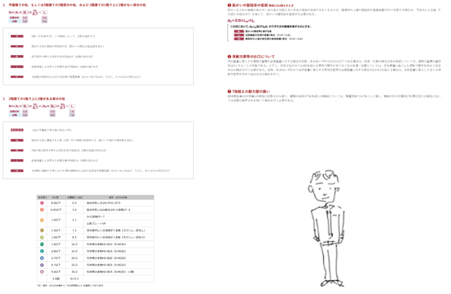 今まで省略していましたが、申請に付けていただいているのは、ざっというと1_壁量・バランス検討書 2_N値検討書 3_柱の小径 4_仕様表 5_構造標準図になりますね。