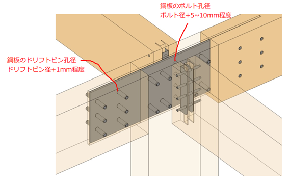 設計者の考え方にもよりますが、それぞれが悪影響を及ぼさないために、製作プレートのボルト用の孔は通常よりも大きく開けることもあります。